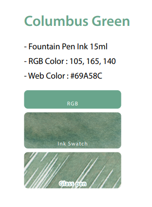 Colorverse Columbus Green - 15 mL Bottled Fountain Pen Ink